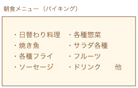 和洋食を取り揃えたビュッフェ形式となっております。ご宿泊のお客様に無料サービスとなっております。